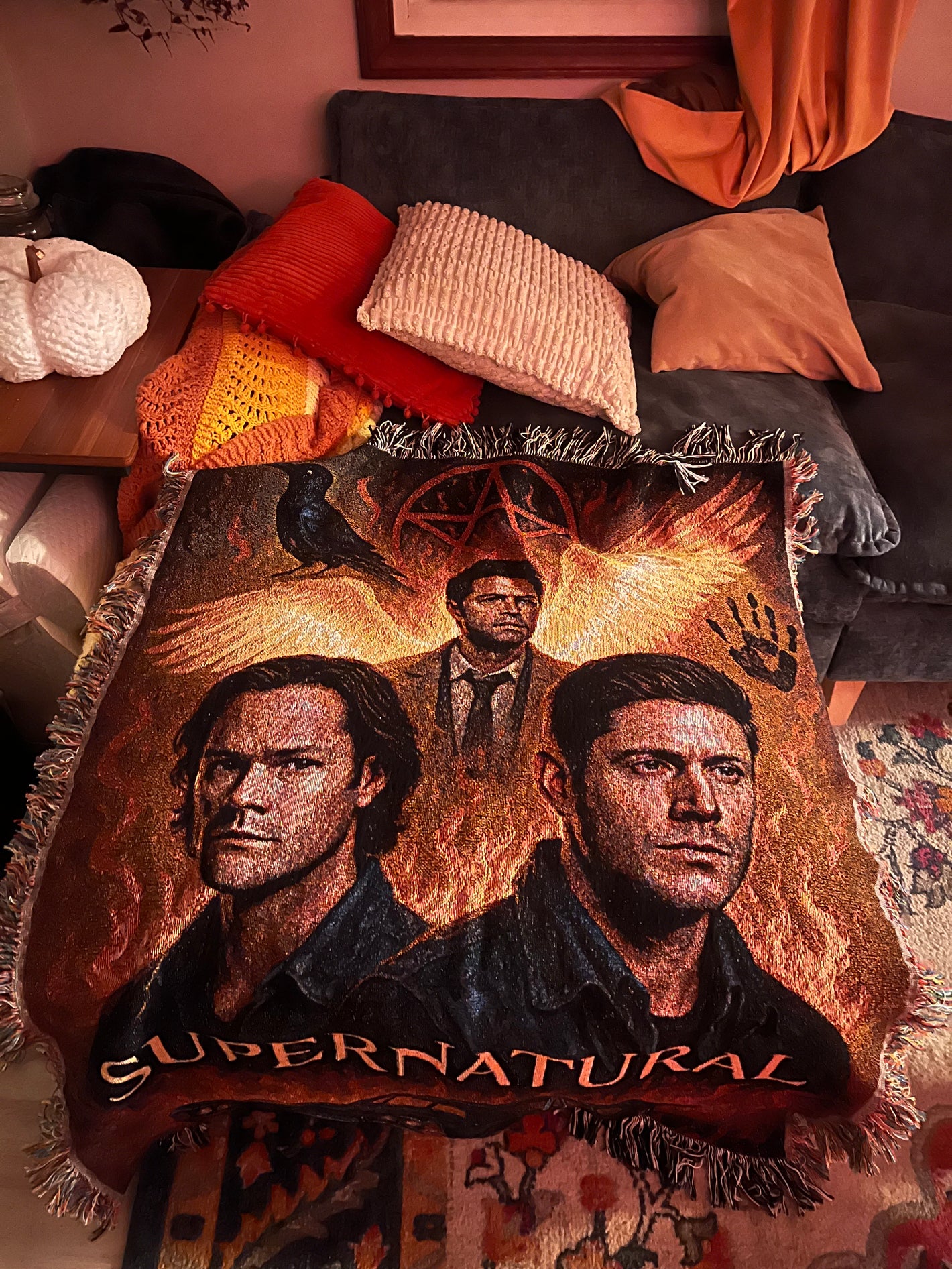 Woven from soft, durable cotton with rich moody colors. Inspired by Supernatural. Perfect for cozy nights or a wall decoration.